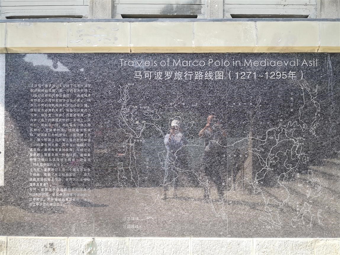 位于今九眼桥的安顺廊桥处所立之碑,记录了马可•波罗旅行的路线图,证明了其经过锦官驿的史实。