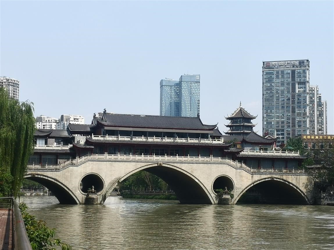 马可•波罗对锦江河道宽窄的描述,也大体符合江水涨落的实情;成都顺江而下通达东海的路途,其描述大致准确;锦官驿就在廊桥正对的北岸上,纺织品税收在他眼里成为了“通行税”。如今的安顺廊桥是三孔仿古石拱桥,虽没有大理石的柱子,但依稀可以想象,那座元朝的雄伟“大桥”,不但是贸易往来、税收的集散地,而且是出入成都的要津之一。