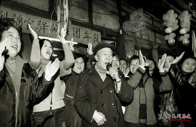 2003年1月31日,300多户人家举行告别锦官驿团年饭。(朱建国 摄)