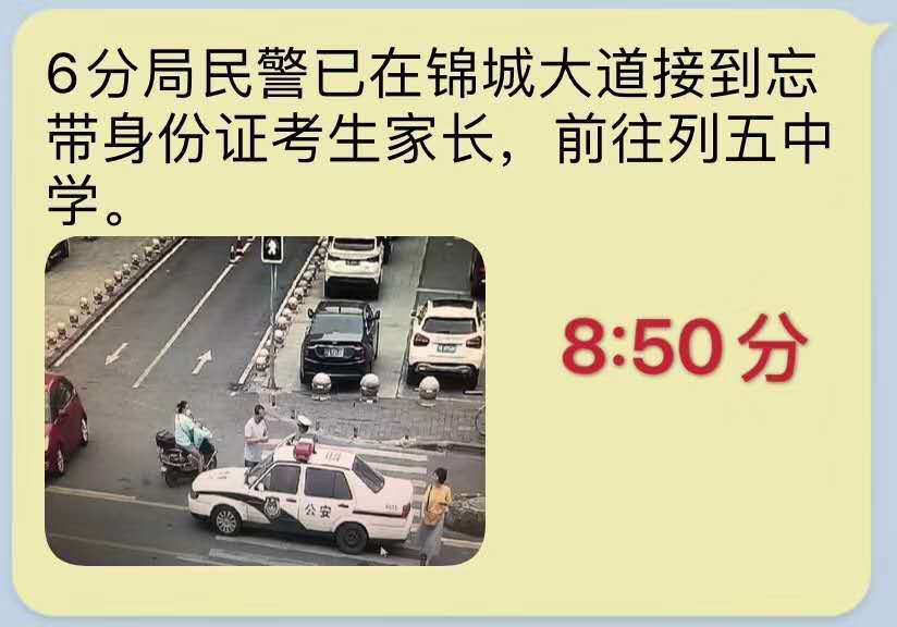 此外,记者从成都市交管局获悉,今天上午成都交警五分局、六分局也接到有走错考场、忘带身份证情况,并紧急驰援,好在最后都化险为夷。