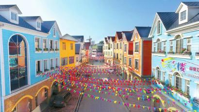孙海峰领着记者在村里逛了一圈。现在,通村公路连到各户家门口,村庄核心区还有一条商业街,两旁都是彩色小洋房。“这些主要是村民的住房,我们按欧洲风情小镇的风貌进行了统一改造。”孙海峰介绍。