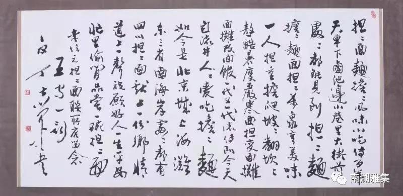 文化人开餐馆,文化气息自然浓烈。面馆虽小,但大门对联极为不凡:“生面熟面天天见面,鲜味辣味滋滋有味。”川剧名丑王守一专门为“李信元担担面”撰写《担担面赋》,书法家白丁(白志荣)手书装裱后挂在墙上。