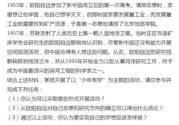 中国月球探测工程首席科学家欧阳自远的高考经历曾经被写成了一道题的题干: