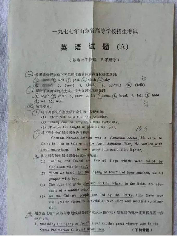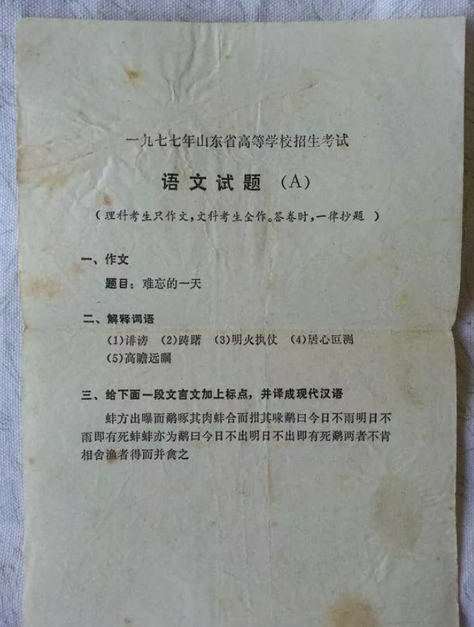 由于许多人多年来一直中断学业,高考学生的水平也参差不齐。为了照顾绝大多数学生,这一年试卷的内容非常简单。但对于长期没有办法接触到书本的知识青年们来说,这样的题也是不小的考验。