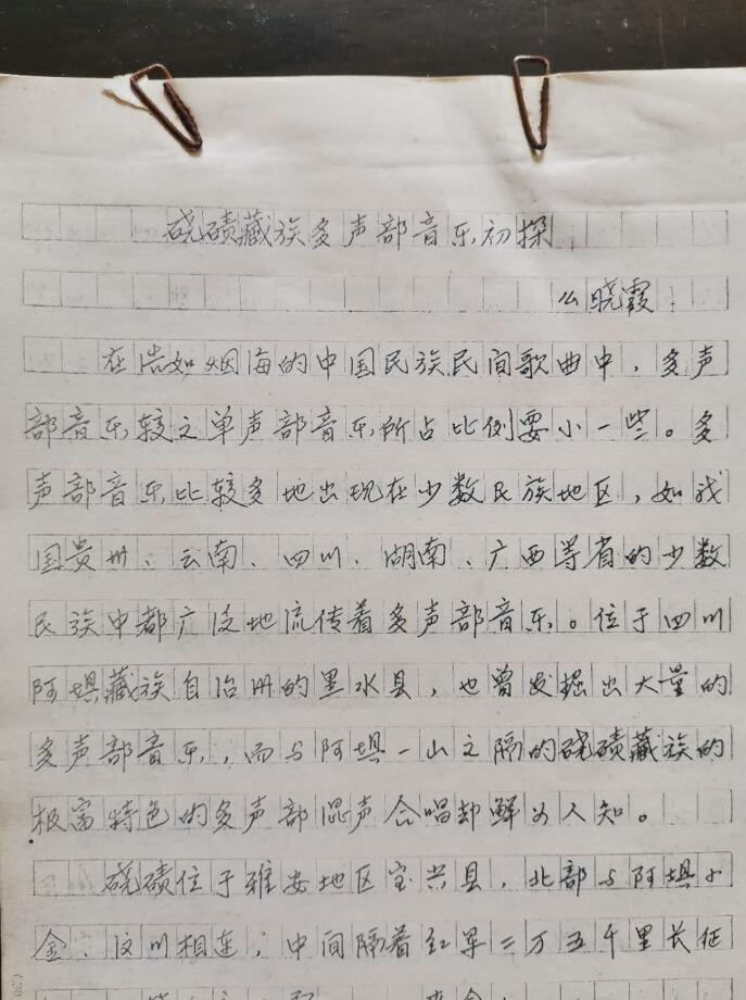 “你说他们既不识谱,又不了解乐理,还能口耳相传那么多代,居然旋律和词还很固定,最重要的是,这些全是无伴奏的天然多声部,太不可思议了吧?”上世纪60年代至90年代,雅安已故知名音乐人幺晓霞,多次前往宝兴县硗碛藏族乡,当她第一次告诉自己丈夫王玉柱“藏族多声部民歌”时,作为文艺工作者的王玉柱百思不得其解。