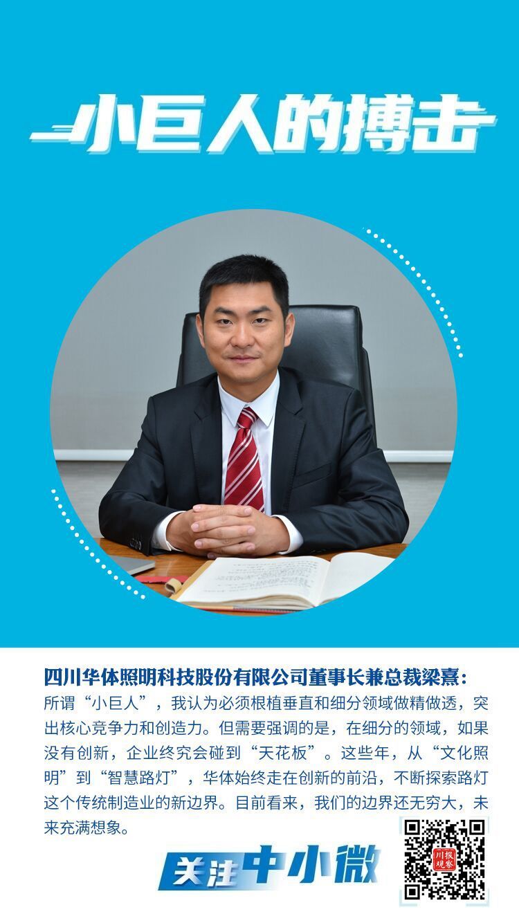“过去10年我们一直想着如何把灯做得有艺术性。”华体科技董事长兼总裁梁熹介绍,凭借在路灯这一垂直领域的精耕细作,公司2017年在上交所主板上市。去年底,公司又取得国家级工业设计中心的称号。省内其他获此殊荣的还有长虹、五粮液等大型企业,这也证明了华体科技的设计能力。
