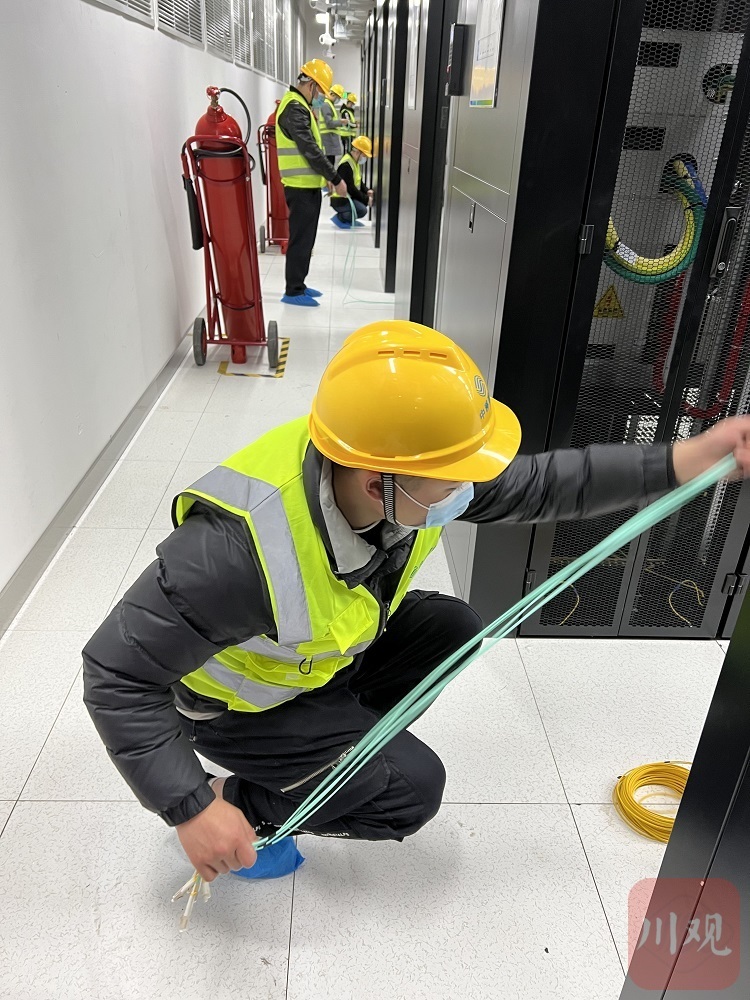 “现在在做的工序是尾纤连接,通过尾纤将各个服务器串联起来,它们才能进行内部通信,从而协同工作。”现场负责安装的中移建设工程师蒋高宇说。