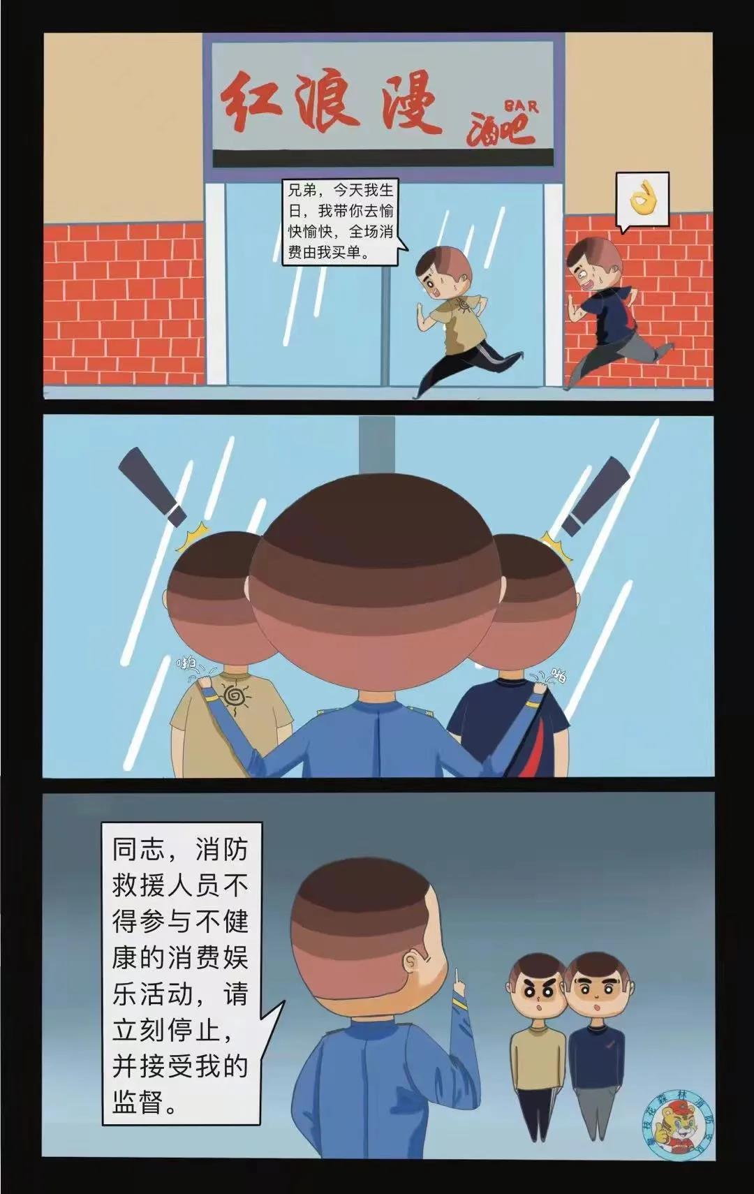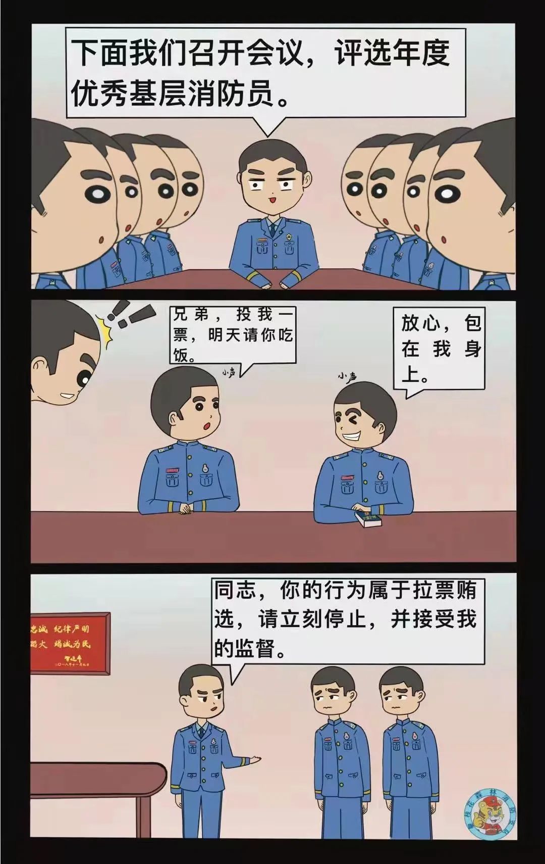 以手绘廉洁,以画宣廉意。据了解,漫画由该支队的消防员王志铭和姜绍淼在业余时间进行共同创作。