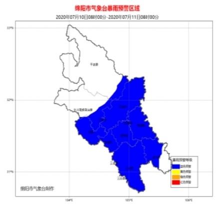 绵阳市预计,10日白天到晚上,该市大部地方有大雨到暴雨,个别地方大暴雨。