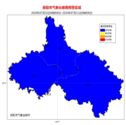 随着资中县公民、太平等镇出现强降水,7月10日10时55分,资中县气象台发布暴雨橙色预警信号,预计未来3小时,资中心降雨量将达50毫米以上,并伴有雷电和阵性大风等强对流天气。