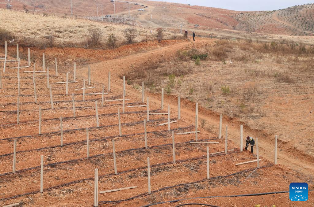 Villagers work at an orchard in Jizushan Town of Binchuan County, southwest China's Yunnan Province, Feb. 21, 2022. Farming activities are in full swing across the country.