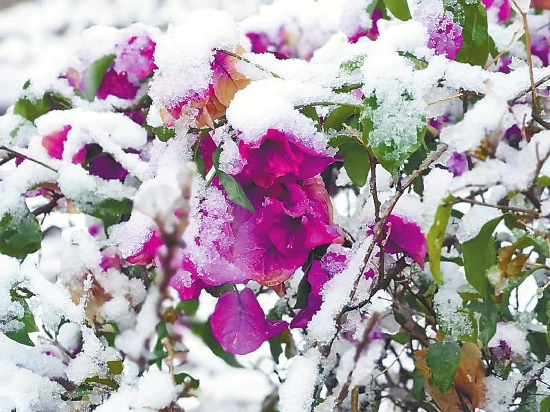 记者了解到,由于此前升温明显,攀枝花部分芒果、樱桃等特色水果已经进入开花期和盛花期,突如其来的降温降雪让果农们揪心不已。“低温持续时间长、发生范围广,无论芒果新种植苗木还是成年结果树,叶片已出现寒害症状,芒果产业面临较大损失。”攀枝花市农林科学研究院研究员李贵利介绍。