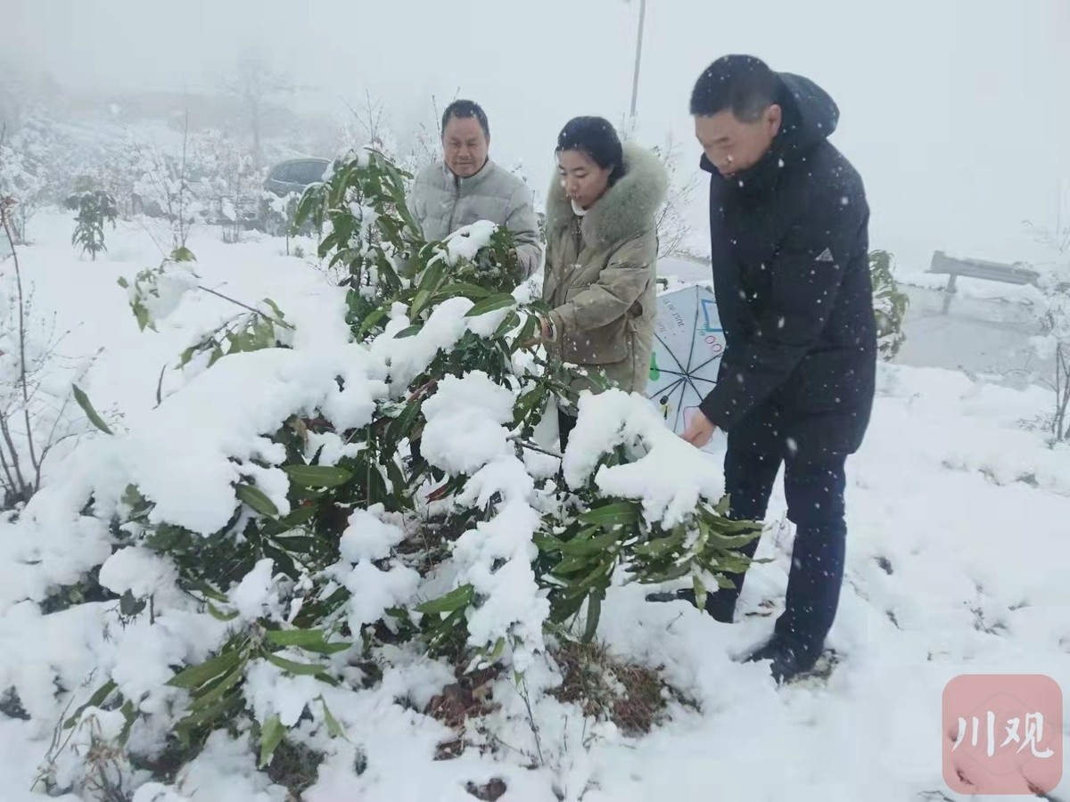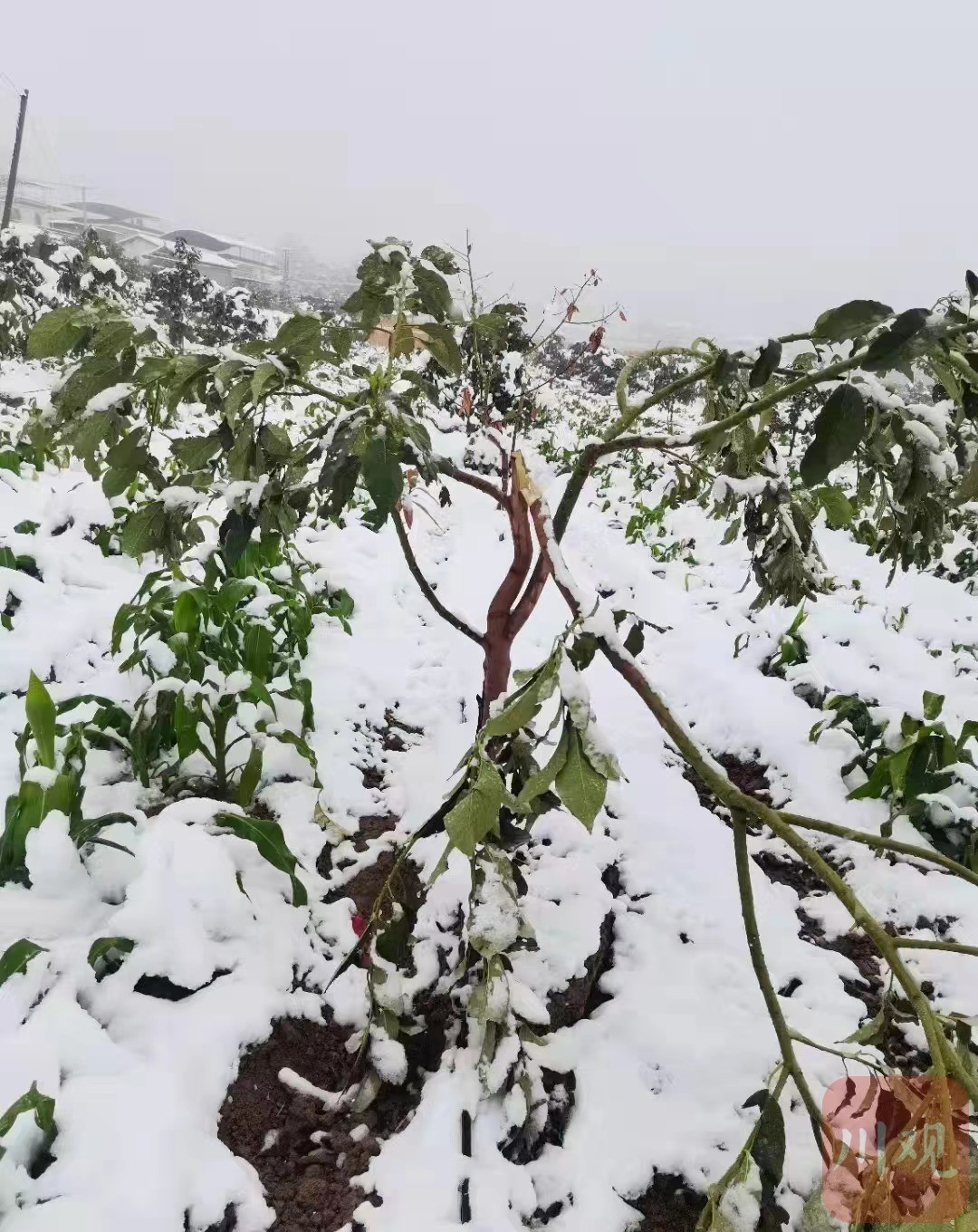 攀枝花市仁和区大龙潭乡裕民村种了14000余亩芒果和400余亩牛油果。2月22日一早,攀枝花市农林科学研究院的技术人员赶到村里。“从早上8点半到中午12点多,村里一直在下鹅毛大雪,芒果花和枝干上的积雪有两三厘米厚,一些树枝被积雪压断了。”攀枝花市民宗干校校长杨文军跟着技术人员一起进村了解情况,“现场让人担心。”