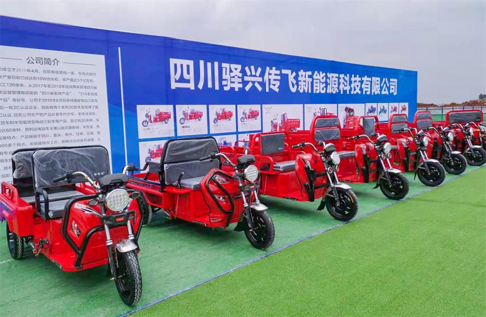 安居新能源年产 75 万辆电动正三轮摩托车项目由驿兴传飞、虹尊方圆、眉山双胜、广汉腾兴、蜀宇凯 5个企业投资建设,计划总投资13亿元,占地 200亩,主要建设厂房8万平方米,建设胜利达牌电动正三轮车、方圆福电动正三轮车、快递车、环卫车及电动低速物流车等生产线15条。