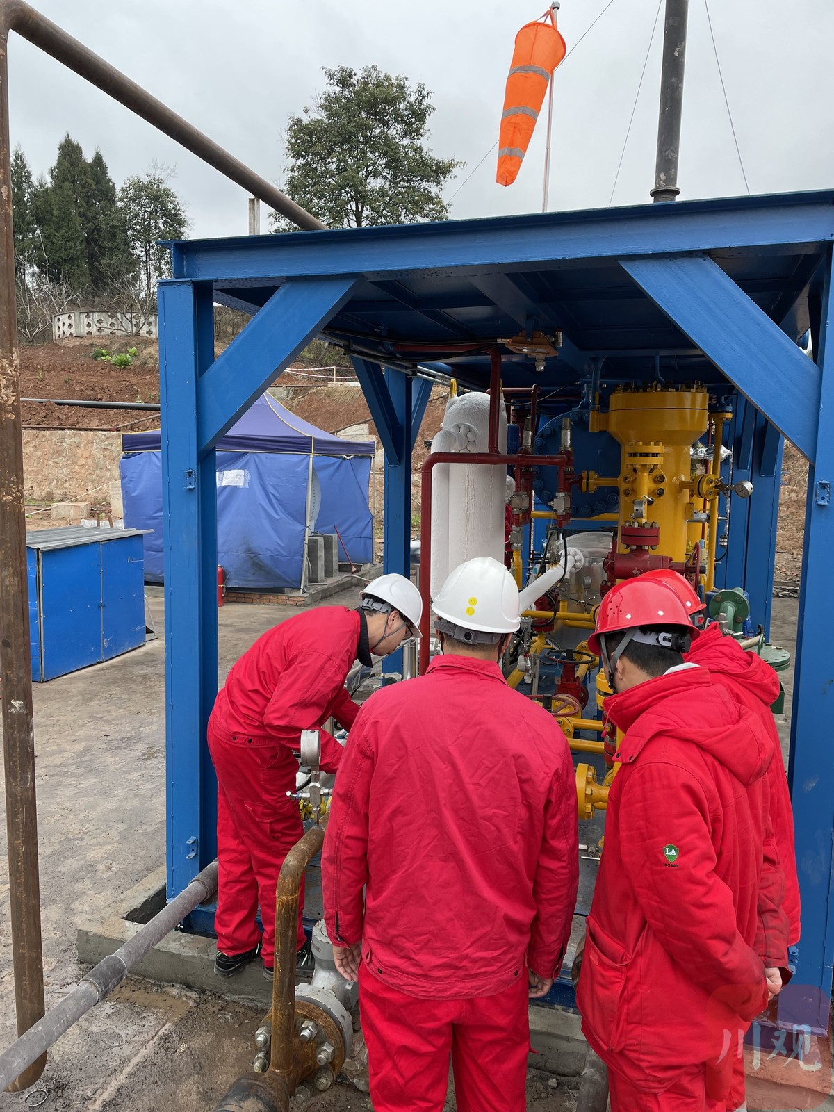 2月17日,气温骤降,天空飘着蒙蒙细雨。一大早,中国石油西南油气田公司致密油气项目部一级工程师肖红林、勘探开发科副科长易建国、基建科工程师杨帆一行三人便直奔现场,目的地是绵阳市三台县永新镇。在丘陵起伏之处,秋林220-8-H1致密气井已经投运,他们此行是想进一步提升这口井的产量。