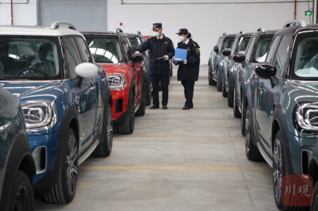 青白江海关关员正在认真核对车辆配置信息