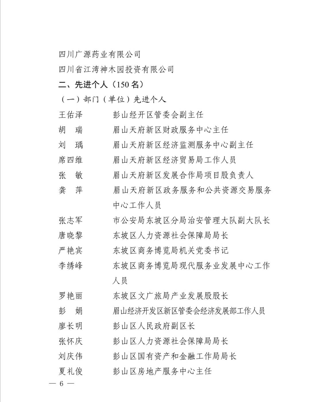 7月14日下午,眉山召开服务业发展大会,隆重表彰了眉山天府新区等80个服务业发展工作先进集体和彭山经开区管委会副主任王佑泽等150名先进个人。