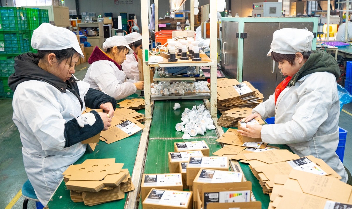 四川联恺照明有限公司生产车间内,工人正在进行产品包装。