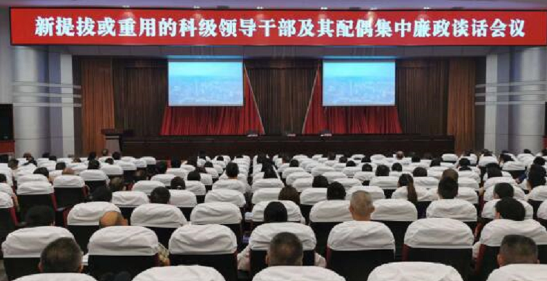 7月10日,内江市资中县举行机构改革以来新提拔或重用的科级领导干部及其配偶集中廉政谈话活动,105对夫妻同上一堂“廉政课”。