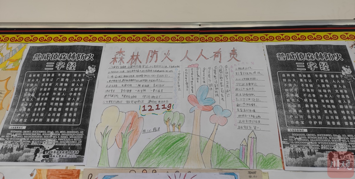 “小朋友请记住,别拿火烛玩游戏。小心火灾随时起,火灾逃生要牢记。”四年级二班的教室里,学生夏彦萍还制作了森林防火手抄画报,准备在主题班会上和同学分享平时学习到的森林草原防灭火知识。