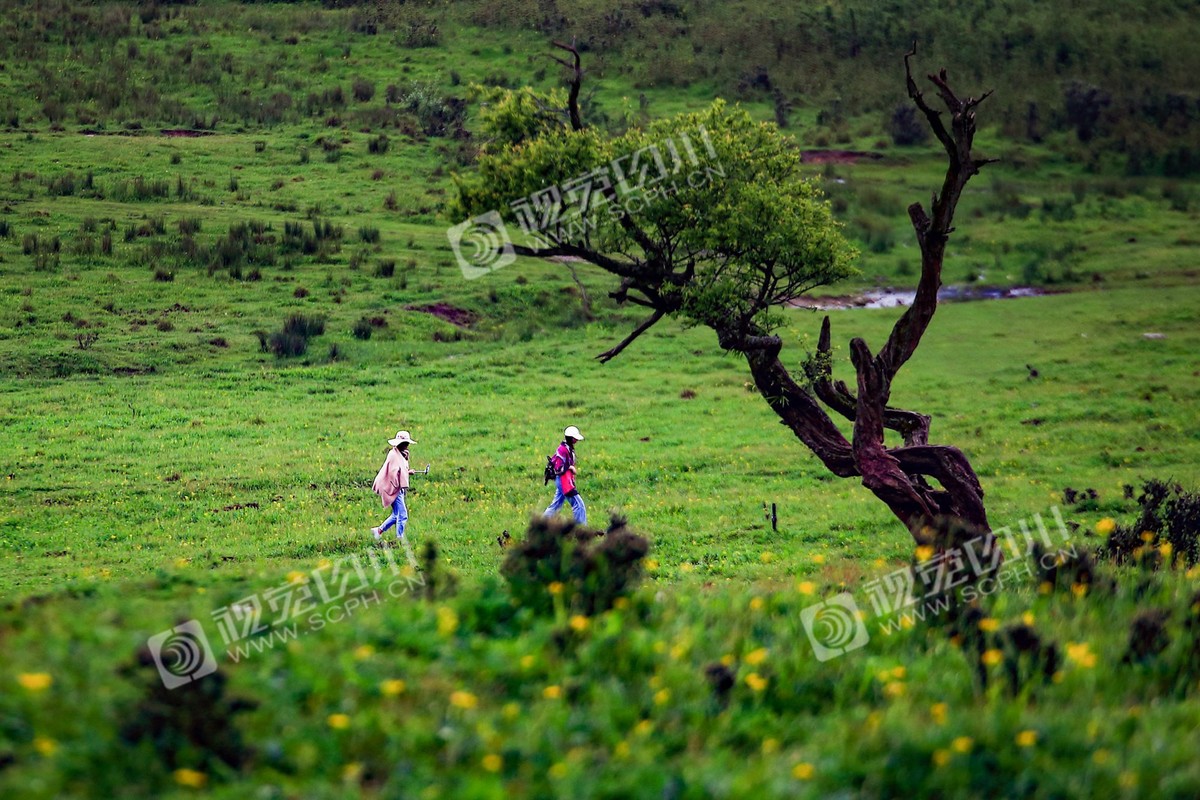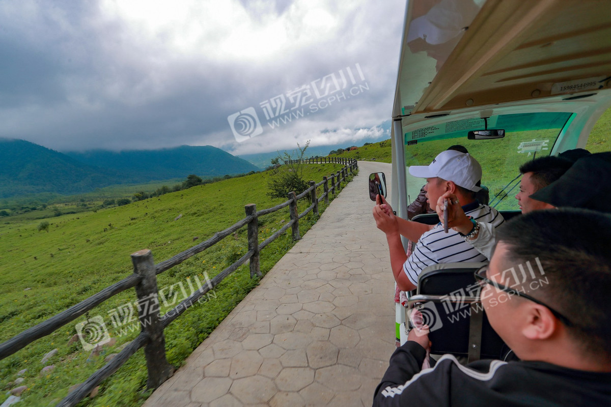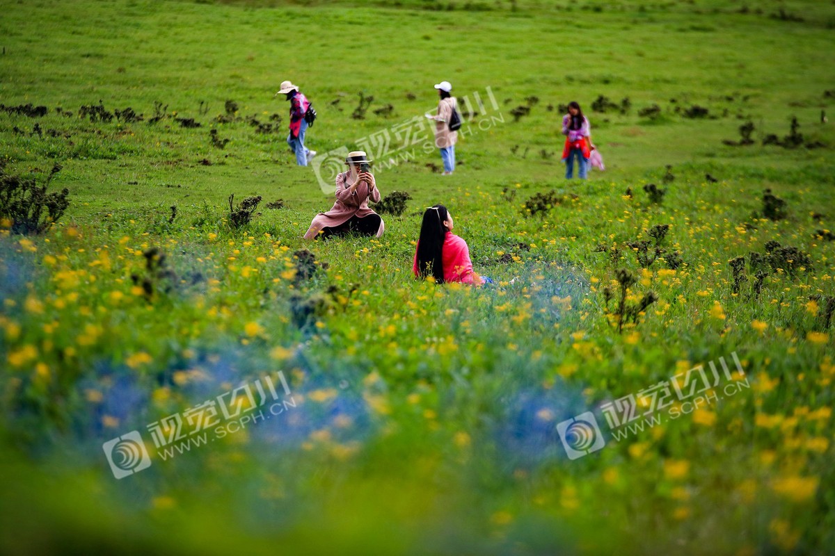 7月14日,地处雅安市最南端的石棉孟获城高山大草甸,山花烂漫绿草如茵,不时有观光车满载游客穿梭期间,在蓝天白云与连绵青山的映衬下,犹如一幅美丽的油画。