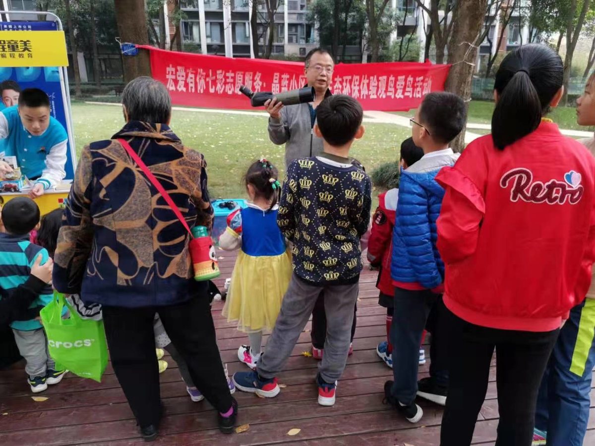 紫色志愿服务队的牵头人是李铁钢,他在小区里组建了一支观鸟爱鸟队伍。“初衷是给孩子找伴,但没想到,这支志愿队从去年10月成立后,很快便集纳了28位‘爸爸’。”李铁钢介绍,大家“小手牵大手”,记录下小区的8种鸟类,还走出小区,到锦江边望江楼观鸟胜地,孩子和大人共同收获了乐趣,和谐了邻里关系。
