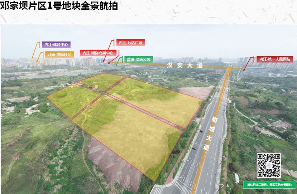 此次推介会的一大亮点是邓家坝片区1号地块,将于 2020年7月23日10时在内江市公共资源交易服务中心办公楼三楼开标厅,以拍卖方式组织出让起使用权,该宗地块面积198亩,性质为商住用地,起拍总价5.9亿。