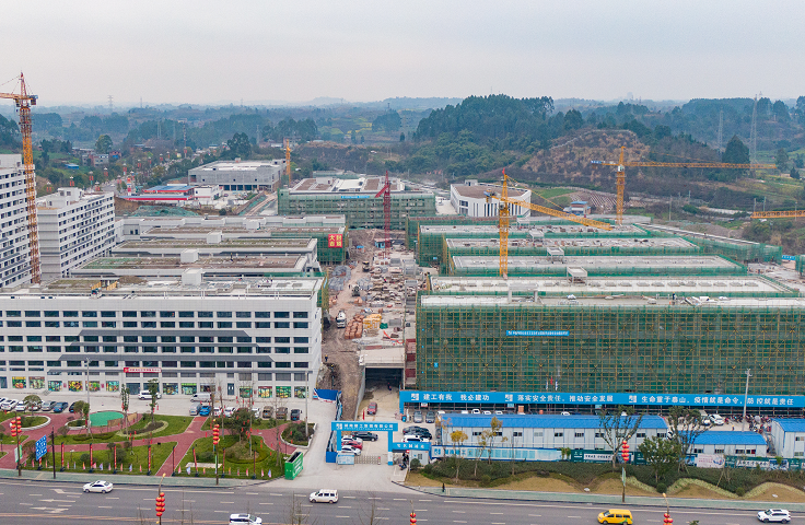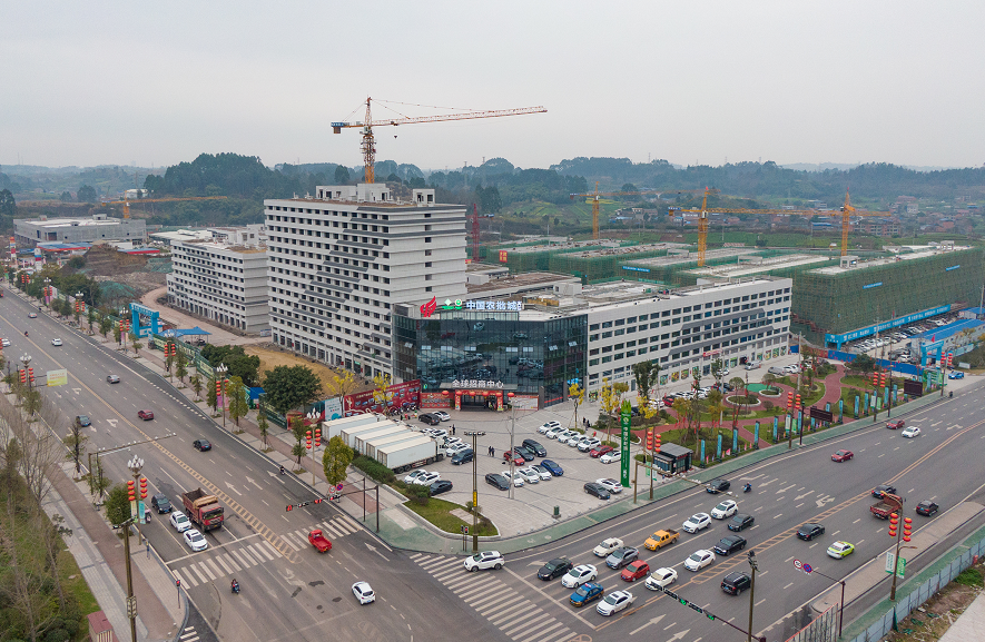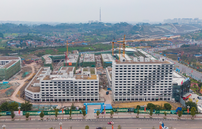 此时,招商中心的背后,内江中国农批城项目建设现场塔吊林立,工人们正在进行外立面装饰装修等工作。“目前,项目已完成了23橦单体、2个地下室和1个钢结构主体工程,现阶段正有序推进外墙装饰、公共区域装饰、室内安装等工程施工。”该项目工程部相关负责人介绍,项目预计今年6月底完成整个项目建设,12月底投入运营。
