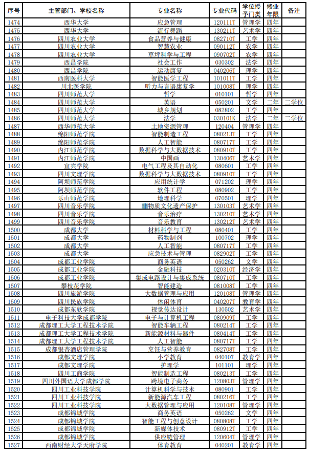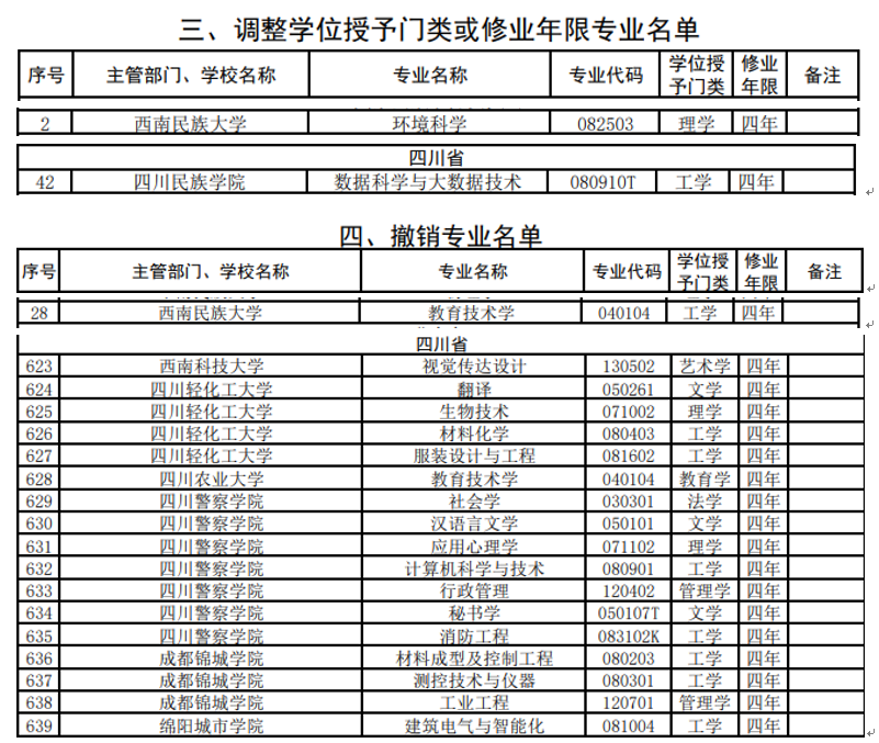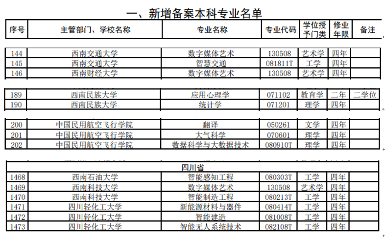 川观新闻记者对在川高校情况进行了梳理,共新增备案本科专业81个,新增审批本科专业6个,调整学位授予门类或修业年限专业2个,撤销专业18个。具体如下表: