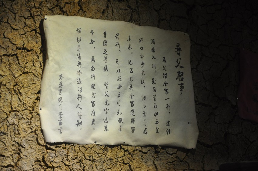 洛带客家博物馆陈列的“湖广填四川”时期的一则移民寻人启示。(图片来源:洛带古镇)