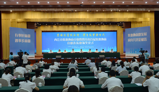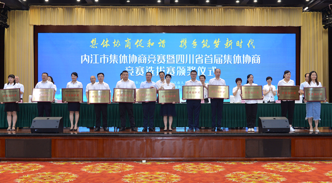 7月15日,内江市集体协商竞赛暨四川省首届集体协商竞赛选拔赛决赛在内江落幕。省总工会党组成员、副主席苗勇,江市委副书记余先河出席颁奖仪式并为获得“优胜代表队”的集体等颁奖。