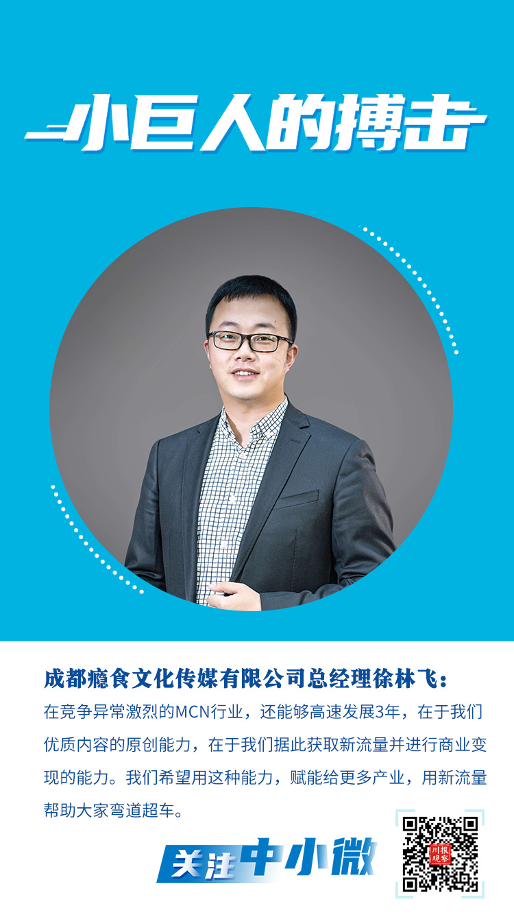 从全网粉丝数量和综合传播能力来看,成都瘾食文化已经是MCN头部机构。论及发展秘诀,徐林飞说公司4名创始人均认可一个观点:与其更好,不如不同。