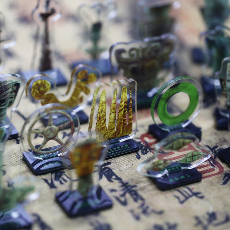 “三星堆遗址所出土的大量玉石器和青铜器,基本上都是用于祭祀的礼器,带有浓郁神巫和神权色彩的信仰体系正是三星堆文化的内核与精髓所在。基于此,我们逐步在脑海中萌生了要做一套三星堆祈福神官盲盒产品的想法。”三星堆博物馆市场营销部部长林维说,“我们选取了5个极具代表性的文物形象,分别配以人设,强调其天人合一、人神互通的灵气,打造出一个青铜时代的‘偶像天团’。”