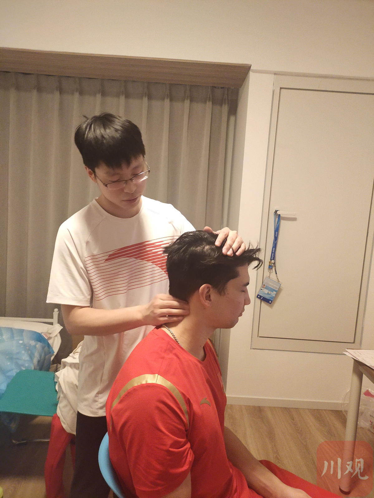 压力何在?原来,白天跟训、晚上治疗和总结都是驻队医务人员的日常,他要和高亭宇在内的队员同吃同住,掌握队员身体状况的第一手资料。赛前,他要和教练员配合制定热身方案;赛中,实时监测运动员身体状况,及时处理突发情况;赛后,负责队员身体的牵拉、放松。而何本祥、罗安民在内的专家团队既要去一线又做幕后统筹,为队员提供个性化定制、精准的医疗保障服务。