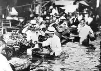 1931年,苏北遭遇特大洪水,人们在齐腰深的水中做买卖。