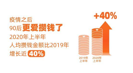 7月20日,中国新经济研究院联合支付宝发布《余额宝90后攒钱报告》(2020版),报告显示,疫情之后90后更爱攒钱了,2020年上半年90后人均攒钱金额比2019年增长近4成,平均不到4天要往余额宝存一笔钱。
