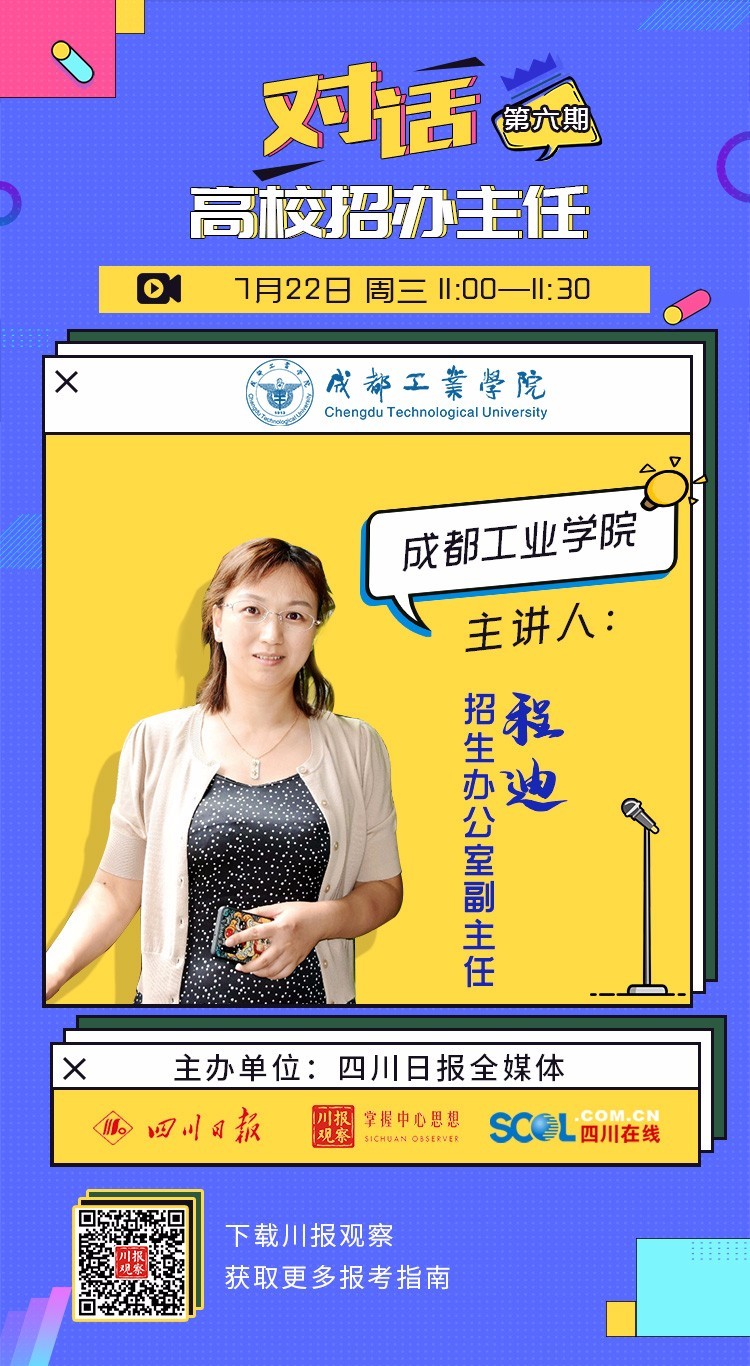 7月22日,由四川日报全媒体集群重磅推出的“后浪们,高校招办主任‘拍了拍’你”2020高校招生咨询直播第六场开启。成都工业学院招生办公室副主任程迪作为嘉宾做客直播间,为考生和家长解读成都工业学院今年招生政策,解答网友问题。