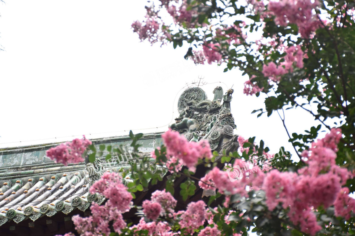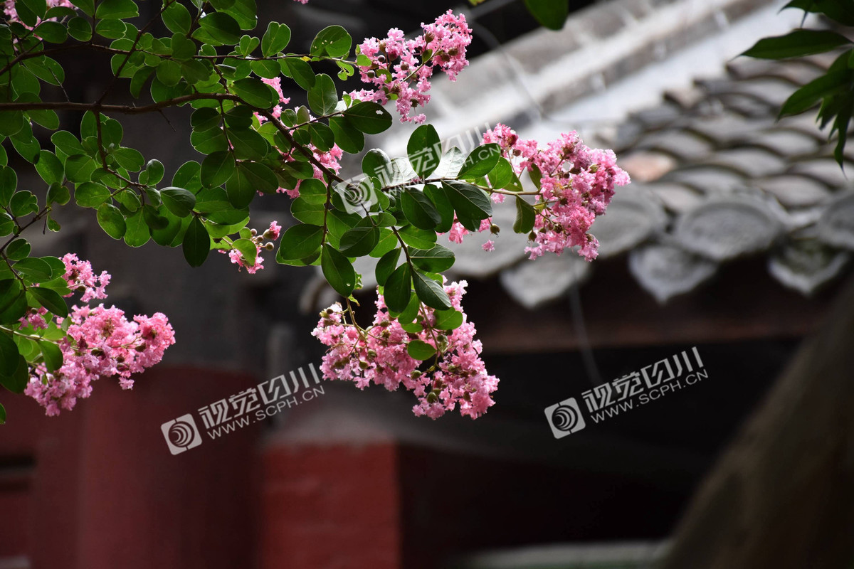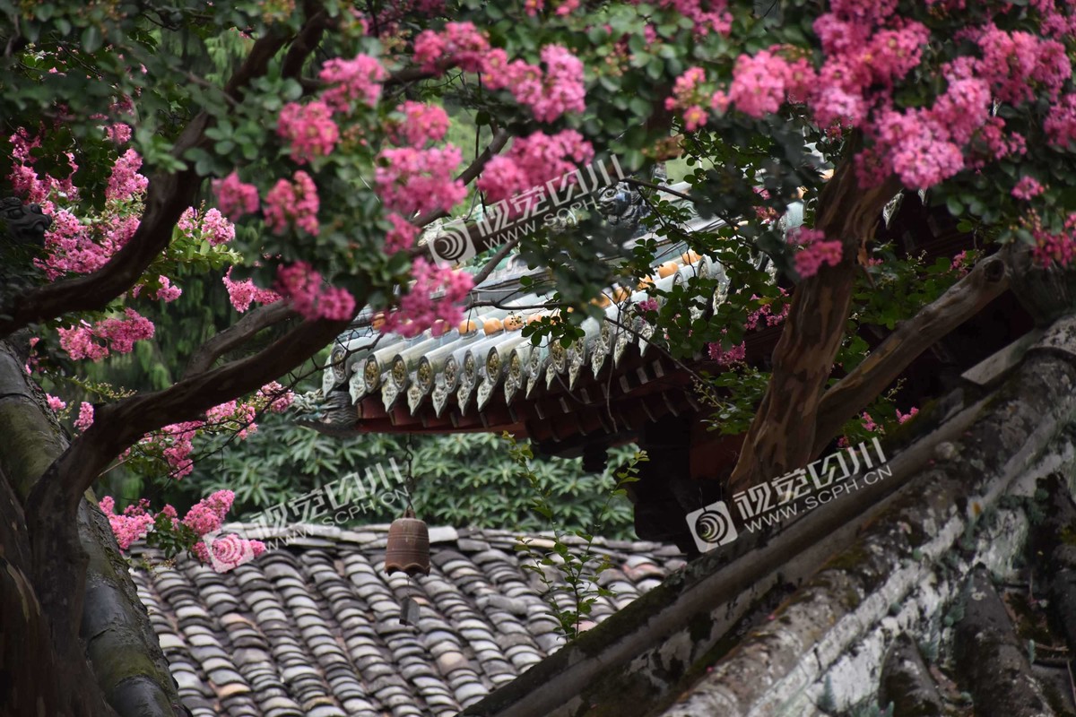 7月22日,绵阳市平武县报恩寺内一棵棵紫薇树花开正盛,一簇簇美丽的花儿缀满枝头,与近600年历史的报恩寺相得益彰,让人流连忘返。