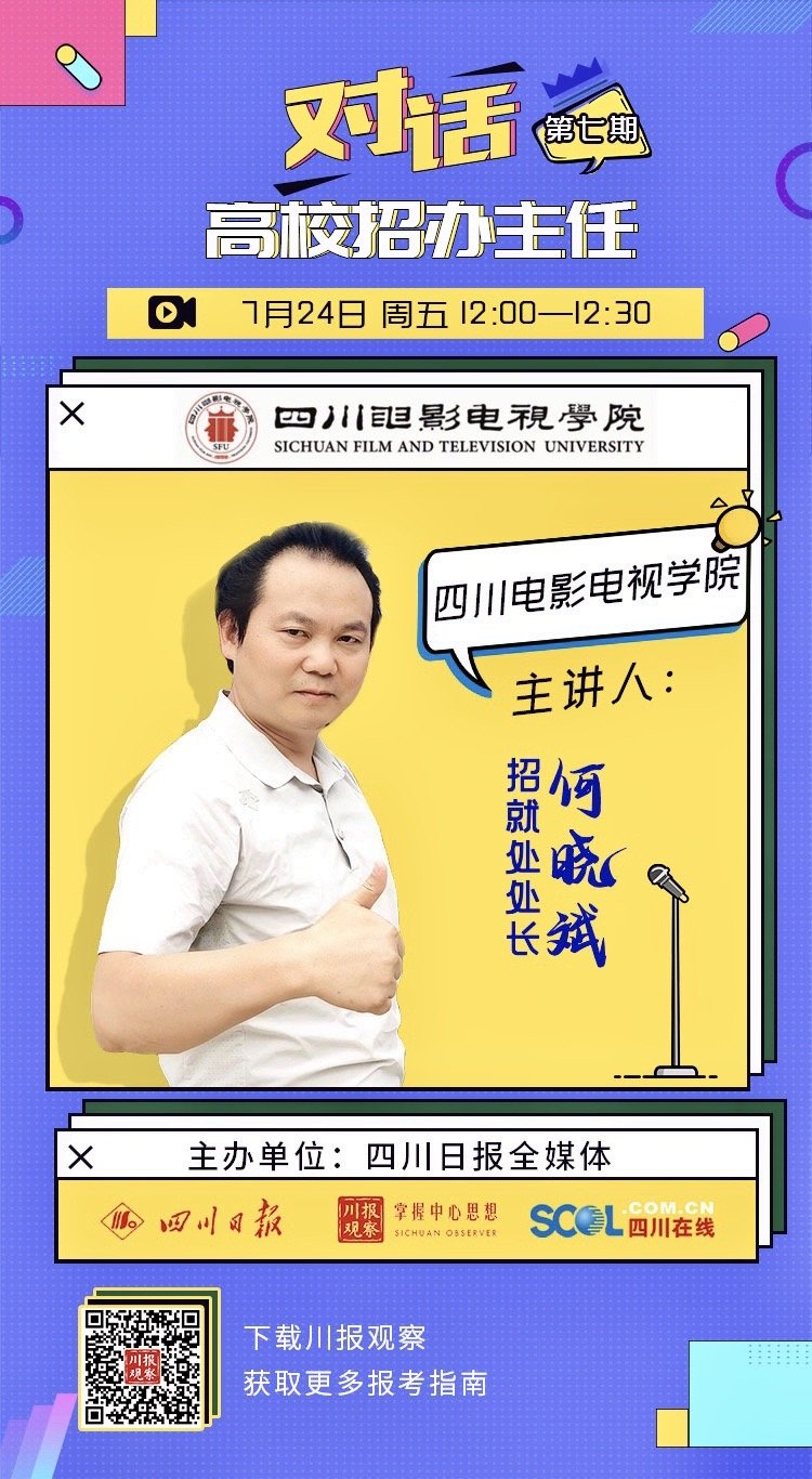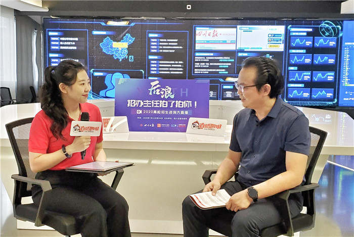 7月24日,由四川日报全媒体集群重磅推出的“后浪们,高校招办主任‘拍了拍’你”2020高校招生咨询直播第七场开启。四川电影电视学院招就处处长何晓斌作为嘉宾做客直播间,为广大考生和家长解读四川电影电视学院今年的招生政策、优势专业,并回答网友提问。