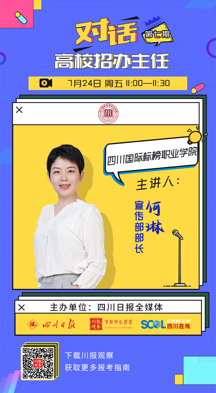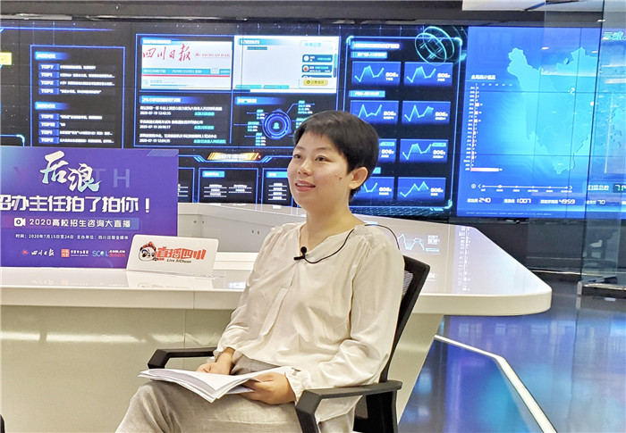 7月24日,由四川日报全媒体集群重磅推出的“后浪们,高校招办主任‘拍了拍’你”2020高校招生咨询直播第七场开启。四川国际标榜职业学院宣传部部长何琳作为嘉宾作客直播间,为考生和家长解读四川国际标榜职业学院今年招生政策,解答网友问题。
