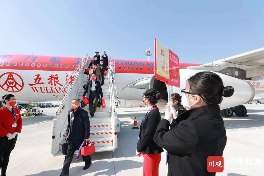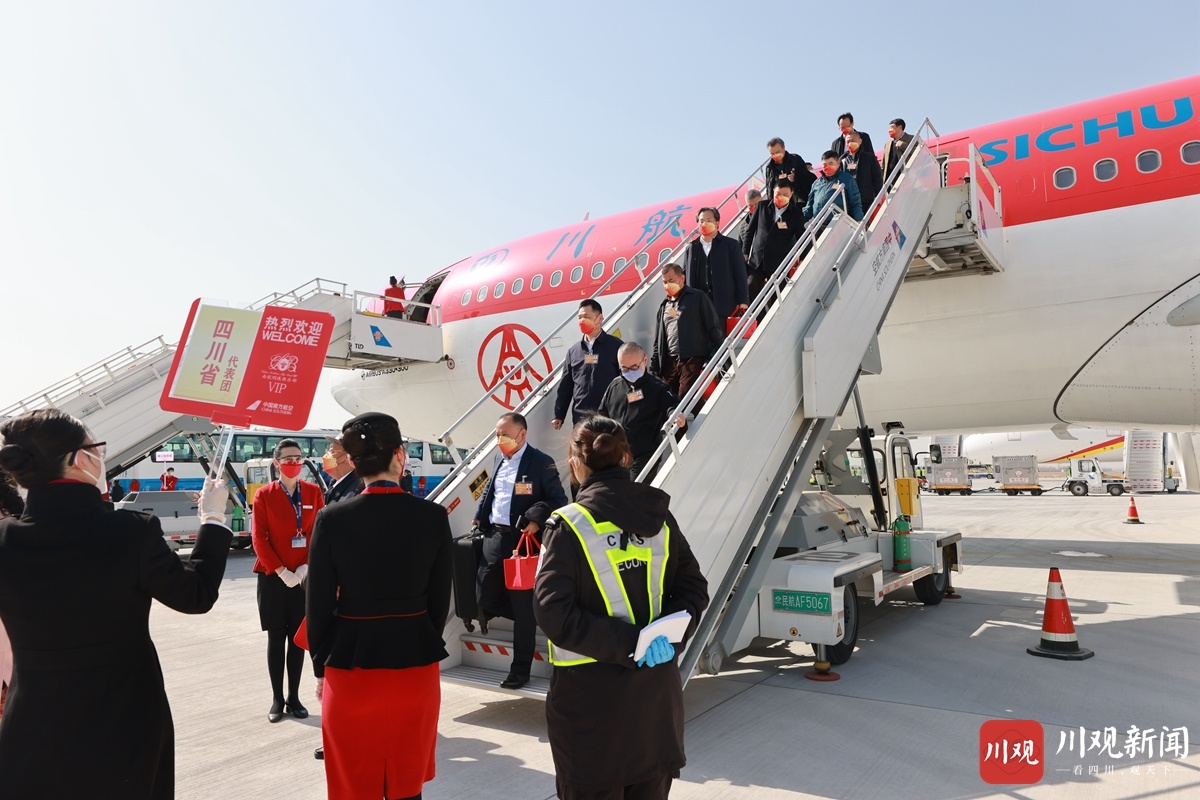 肩负庄严神圣使命,带着全省人民重托,3月3日上午11时35分许,出席十三届全国人大五次会议的四川代表团代表抵达北京大兴国际机场,满怀信心和期待共赴春天的盛会。
