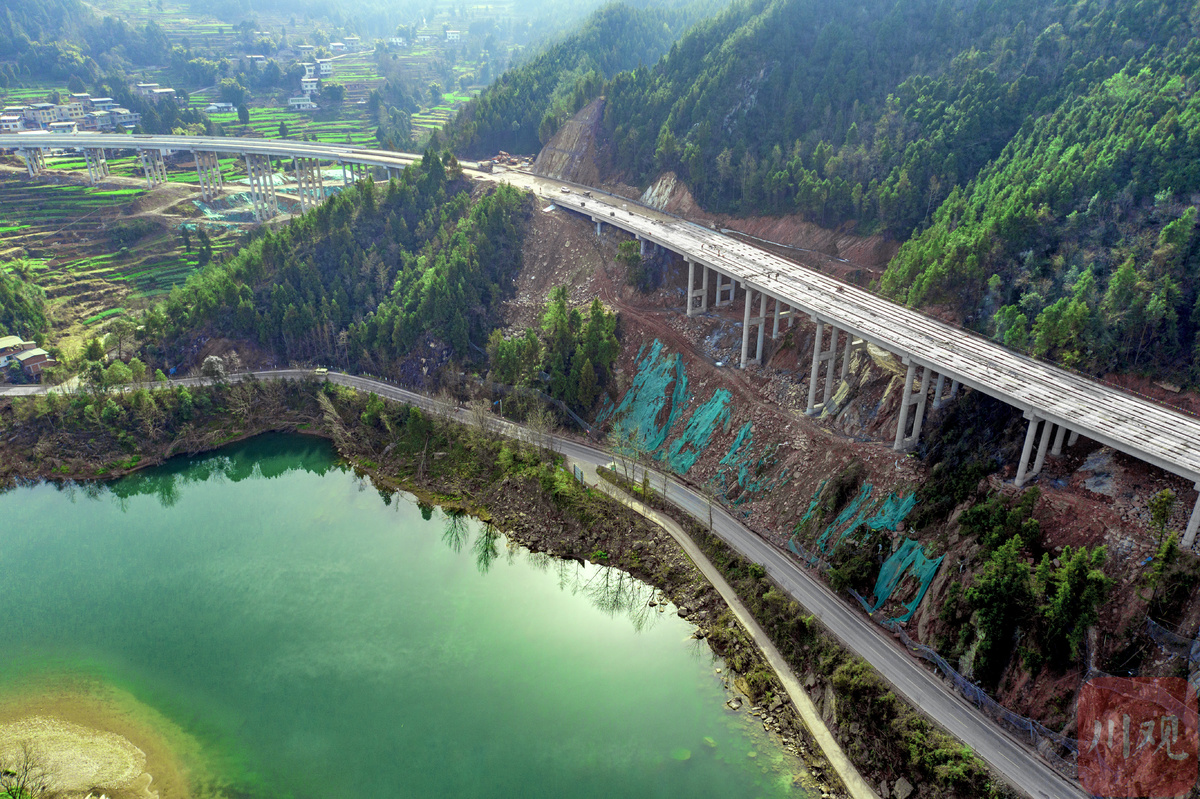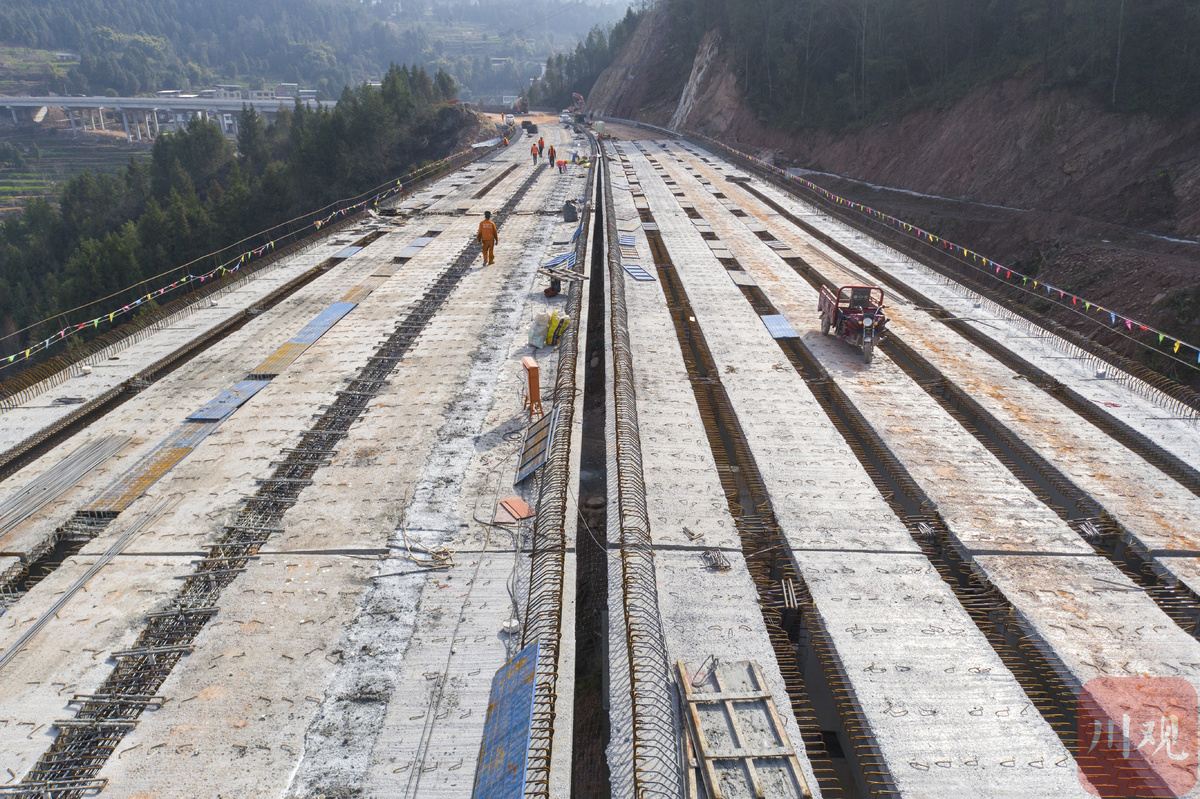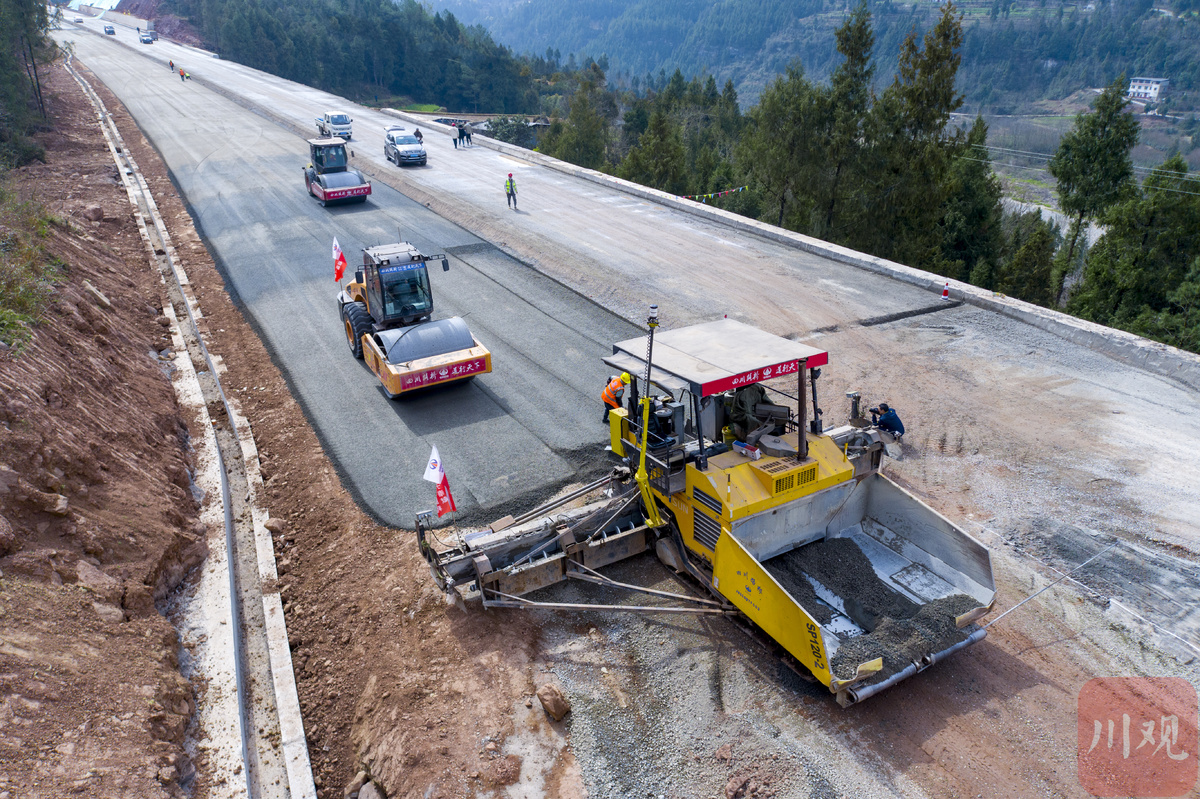 2022年3月1日,在省道204线诺华公路通江县段建设现场,工人们正加紧施工。据了解,省道204线诺(水河)华(蓥)公路通江县城至诺水河段新建工程是省重点项目。该项目通江段全长52.8公里,起于通江县环城北路与既有S204线交叉口处,共设连接线7处、枢纽互通1处,全线设桥梁123座、隧道4座,桥隧总长占路线长度的53.7%,总投资59.58亿元,建设工期5年。建成后将实现县域干线、旅游环线“互联互通”的发展目标,对完善革命老区路网布局,改善区域交通条件,促进区域经济社会发展和实现通江县人民稳步增收,同步小康具有重大意义。