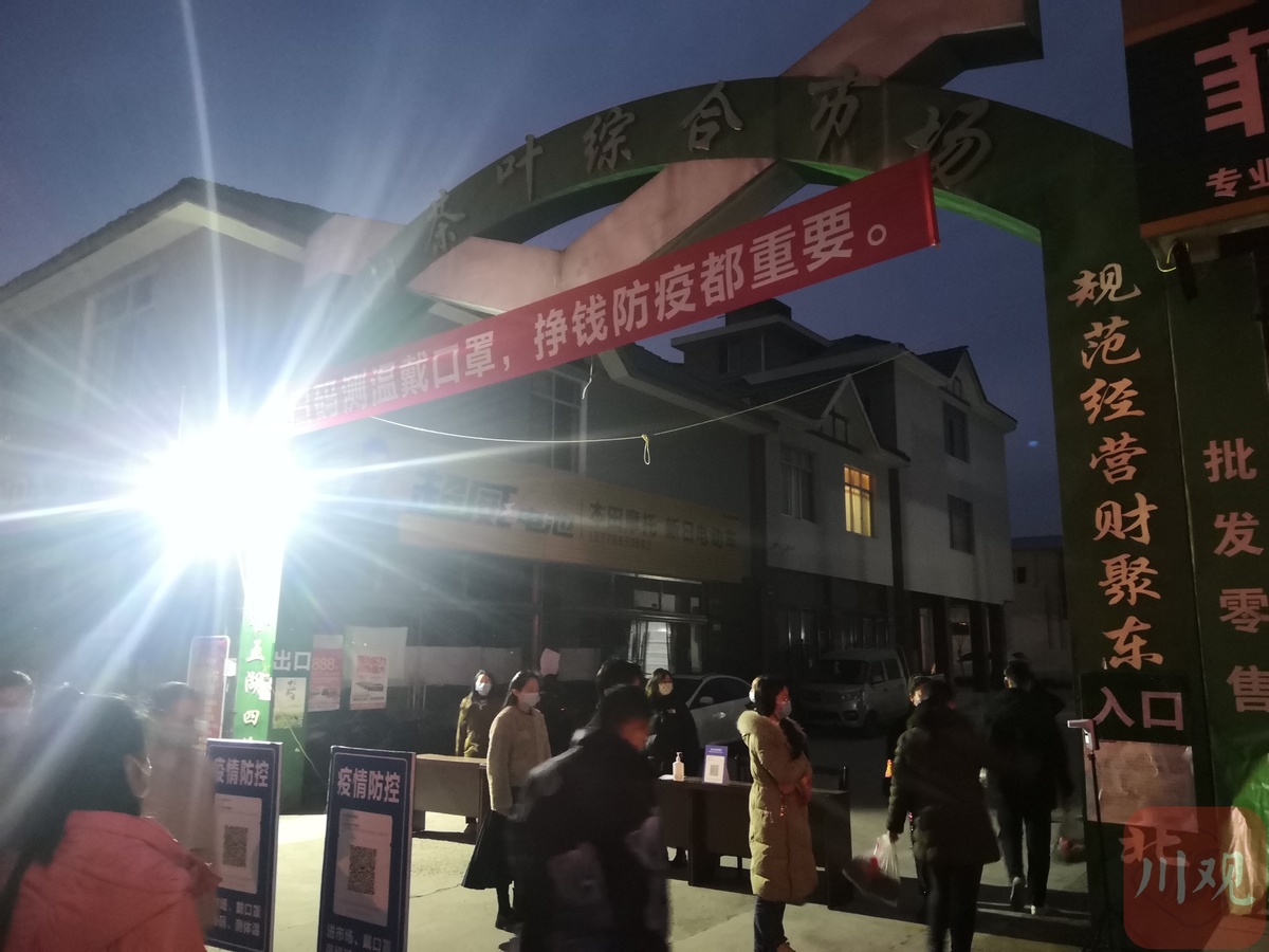 3月2日,洪雅县中山茶叶综合市场迎来了春茶开市的第三日,这天7时左右,天刚朦朦亮的市场便迎来了人头攒动,当地的茶叶作坊老板王桂花提着一袋新出炉的碧螺春茶叶信步入市,准备将手中的两斤碧螺春茶叶卖个好价钱。