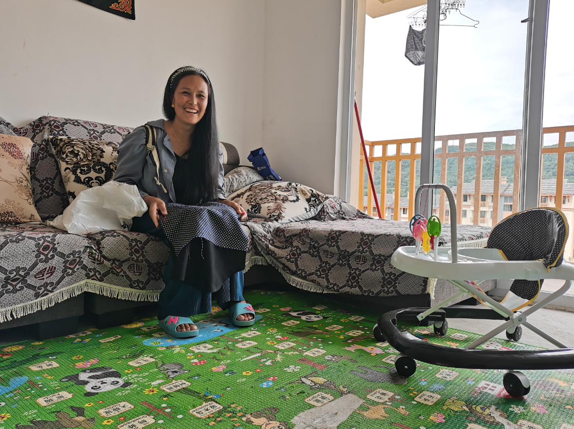 由于家里人口多,她和丈夫一直在山上经营着4亩耕地,种了花椒、玉米、海椒,还养了1头母猪、10只鸡,年收入两万元左右,日子过得紧巴巴的。5月底搬进社区新家后,勒格吉克莫就一直琢磨着,如何将带娃的时间利用起来,靠勤劳的双手,见缝插针做点有用的事。