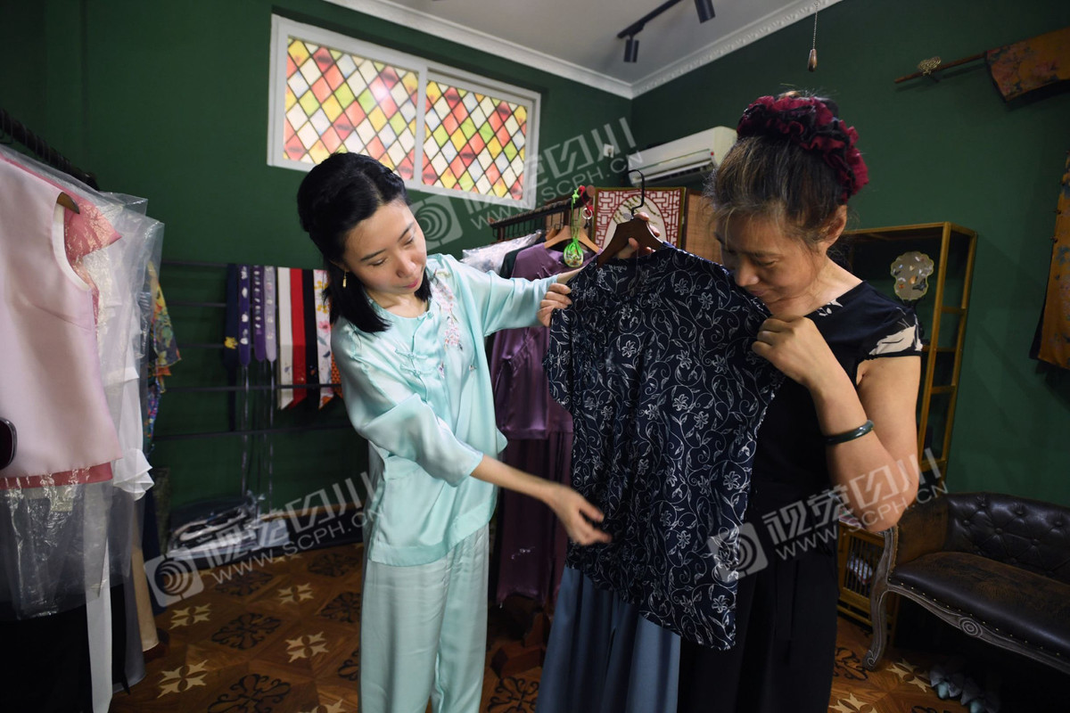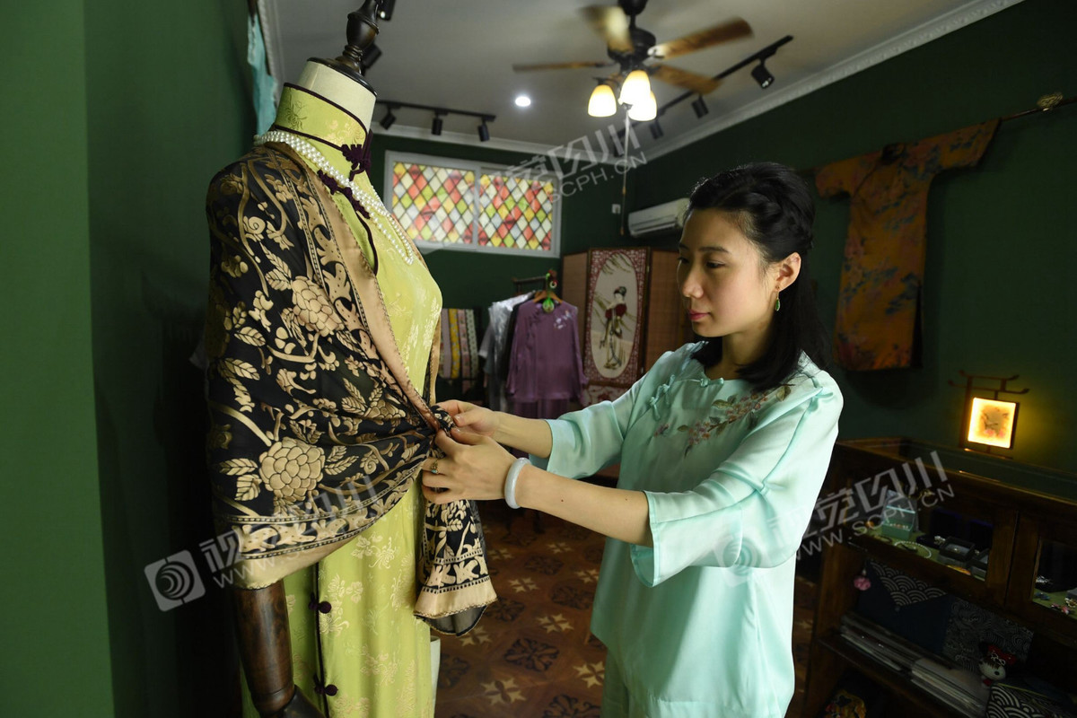 7月28日,宋菲正在工作室里设计旗袍。宋菲是一名律师,也是传统旗袍的设计师,热爱传统文化,热爱古法旗袍的精致之美,并有着独特的审美风格。两年前,宋菲终于按耐不住对传统旗袍的热爱,依然决定转行,在苏州系统学习了古法旗袍和传统服饰的设计与制作后,她从一名律师,变身为旗袍设计师。