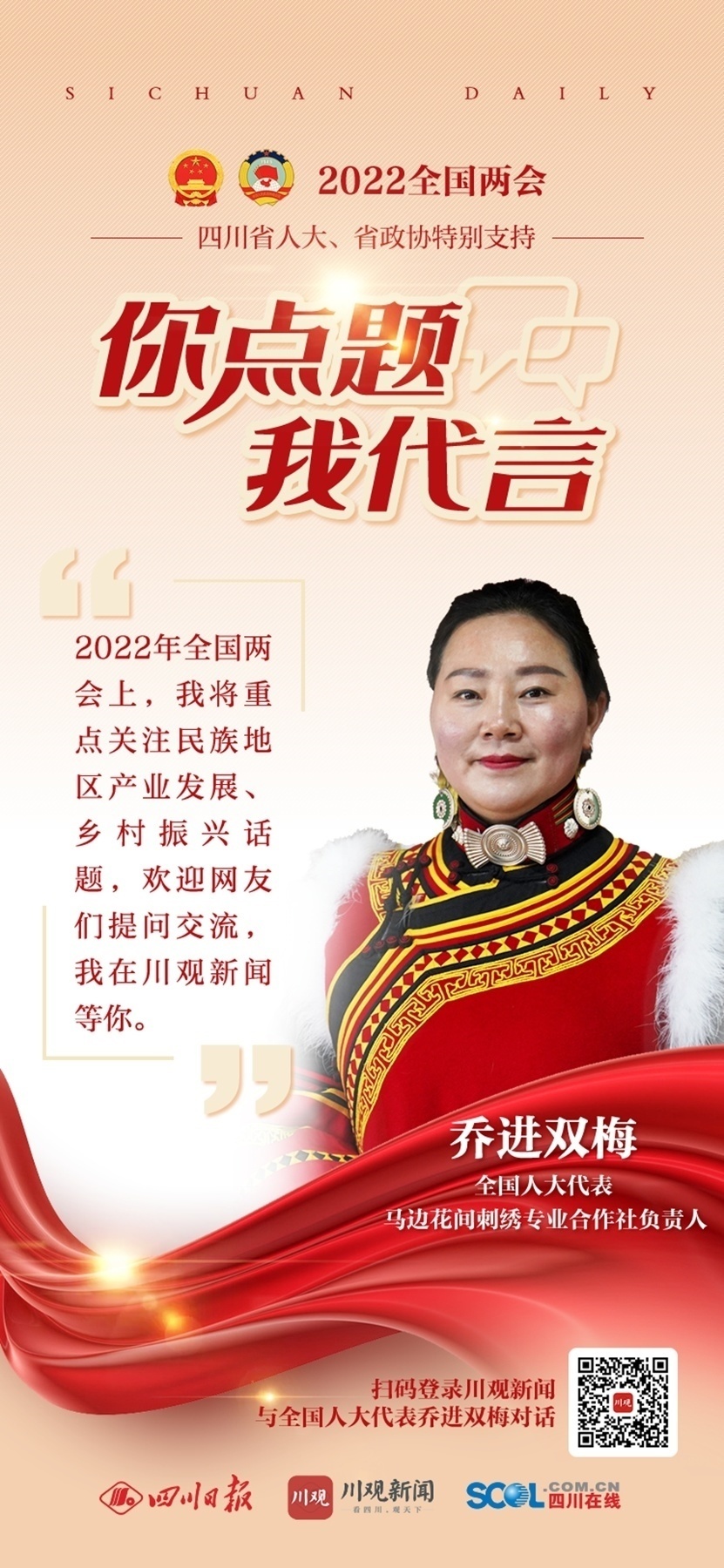 方式三:点击四川在线“你点题,我代言——四川日报全媒体邀您‘上两会’ 代表委员为你代言”活动网址进行留言。(点击链接进入>>>https://topic.scol.com.cn/2022/22bxdt_qg/)