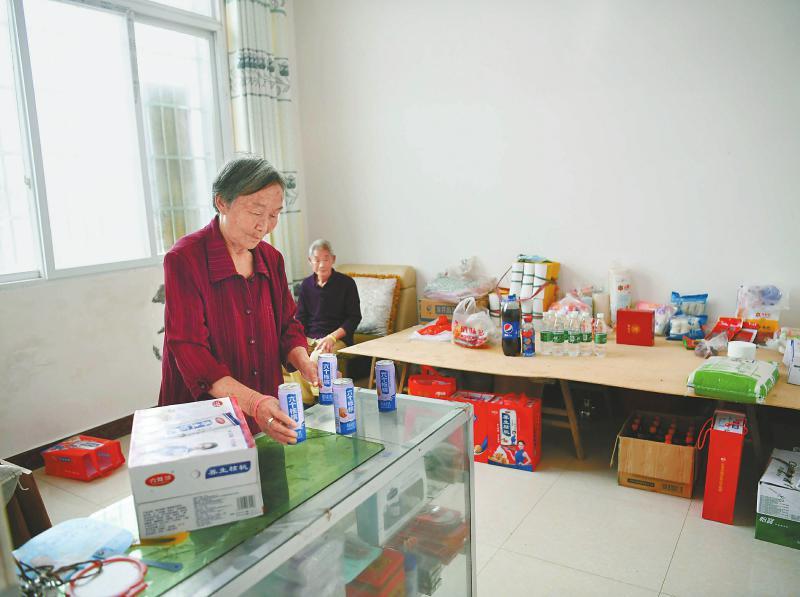 王进修(右)和王桂花老两口在家里经营着小卖部。