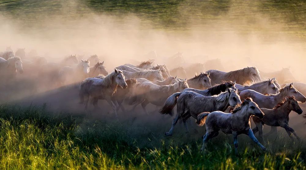 ▲ 马群驰骋在内蒙古锡林郭勒大草原上(2020年7月31日摄) 连振摄