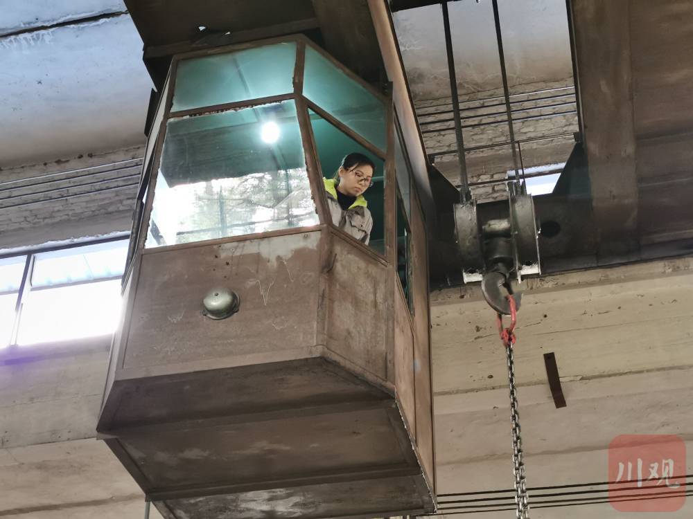 3月4日,四川川煤集团华荣能源公司广元机制分公司机加工车间起重机司机赵敏正在精心地操作起重机。