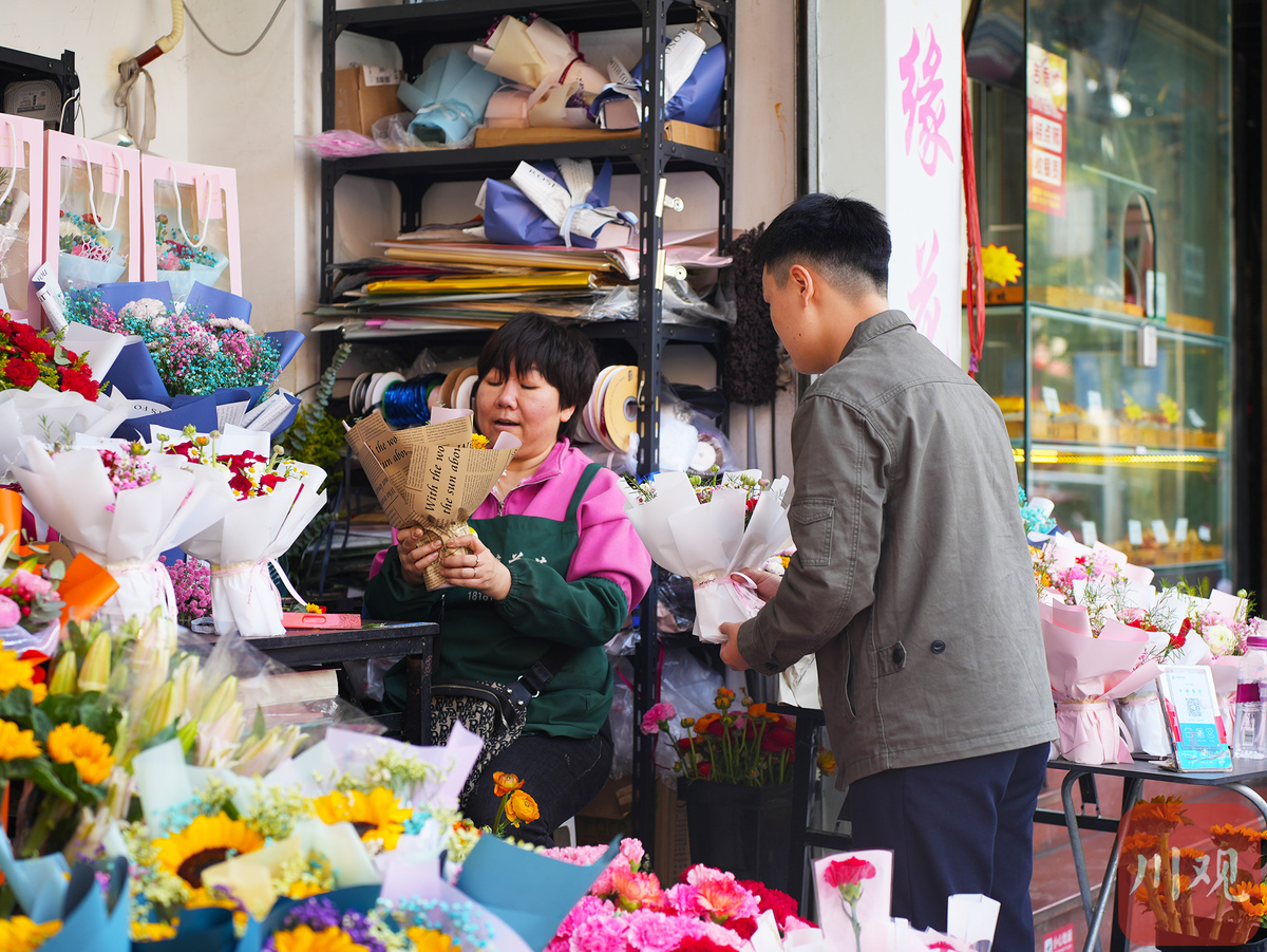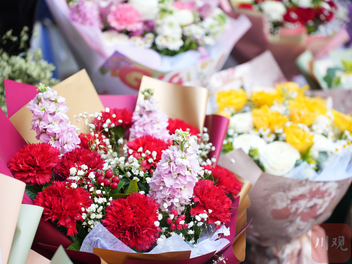 妇女节的到来,加上最近天气回暖的因素,内江市场上的鲜花、绿植等销售迎来小高峰。3月7日,川观新闻记者在内江市市中区花鸟市场、天津街路口看到,各花店门口有序摆放着包装好的花束,单支的康乃馨、玫瑰、月季等鲜花。
